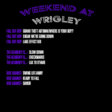 For this project we had to design and concert poster and an album cover to go along with the concert poster. I choose Fall Out Boy because 1) I am from Chicago suburbs and 2) They are my favorite band. It wouldn’t be a Chicago related concert without other bands from Chicago joining them, at Wrigley Field of course! (yes, I know they have actually played here). I found this to be one of my favorite assignments due to the freedom of choice and I did enjoy playing with different layers and tools in Photoshop and Illustrator. I decided to go with the purple theme since their latest albums revolve around the color purple. I also learned more about working with layers, altering text, and how using basic shapes and lines can be just the addition that’s needed to tie everything together.